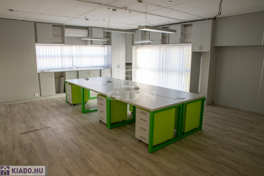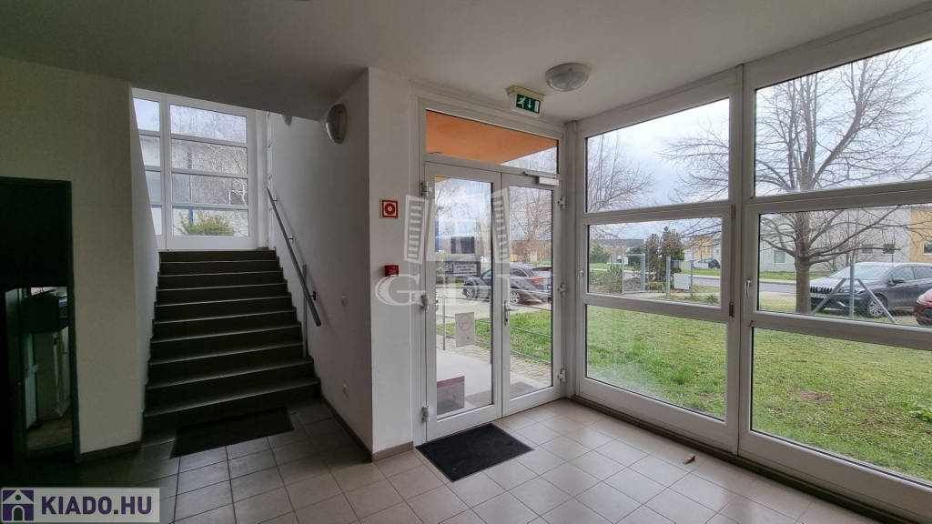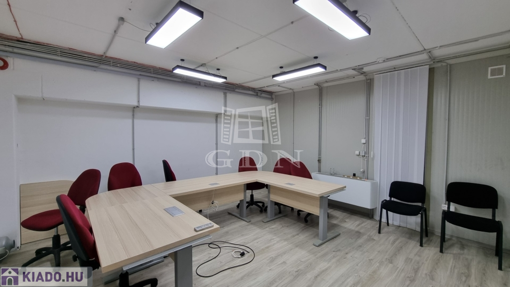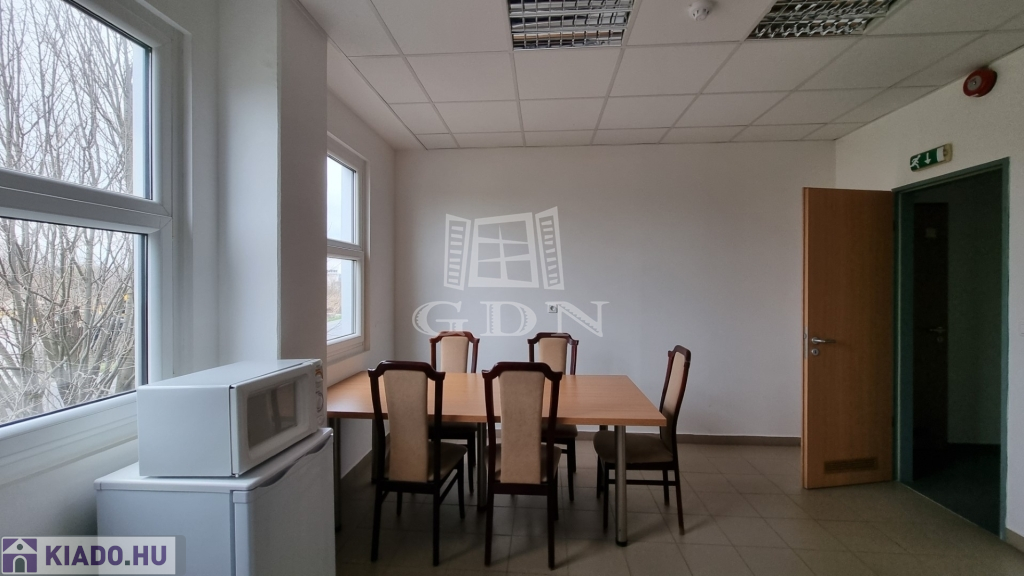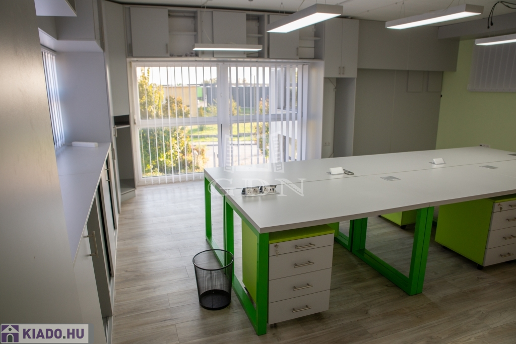 A csarnokhoz bérelhető egy újszerű állapotú, első emelti, klímás, 45 m2-es irodahelyiség közös használatú WC/mosdóval és teakonyhával. Igény esetén tárgyalóhelyiség is bérelhető.