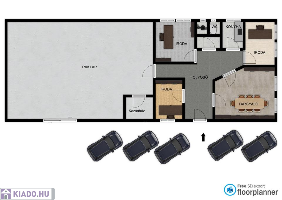 - Raktár alapterület: 240 m²