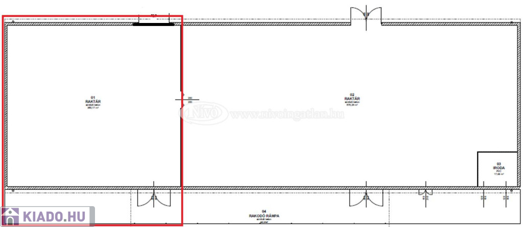 - össz. raktár: ~700 m2 két épületben; 325 m2 és 360 m2