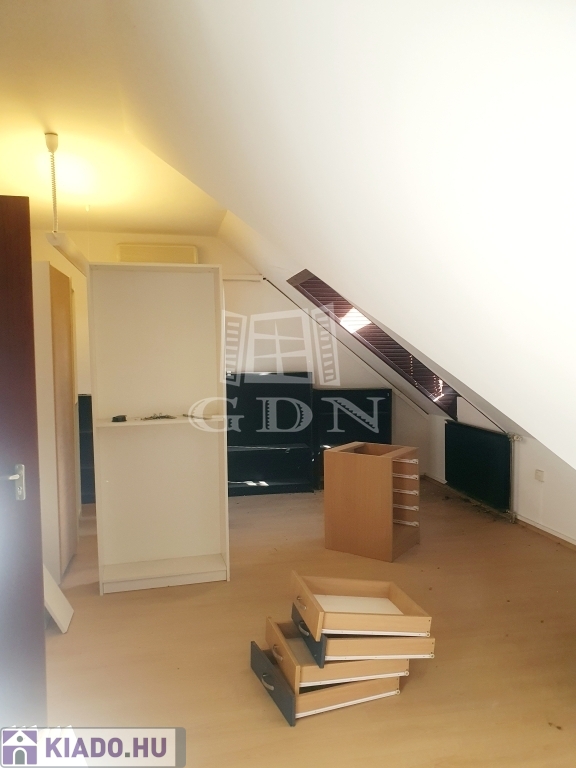 Hosszútávú bérbevételre kínálok egy irodaépületben található tetőtéri, kiváló elosztású, részben bútorozott irodát.