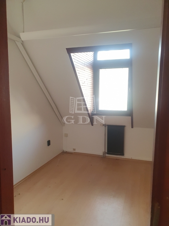 A bérbe vehető iroda az épület tetőterében található, bruttó alapterülete közel 100 nm, hasznos alapterülete megközelítőleg 70 nm, felosztását tekintve négy irodahelyiség, mellékhelyiség, előtér és teakonyha kialakítású. Fűtése és meleg vízellátása gáz-cirko rendszerrel megoldott.