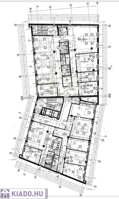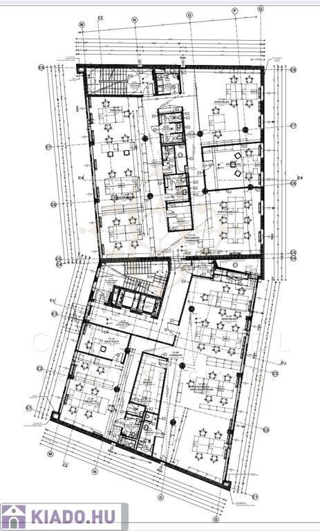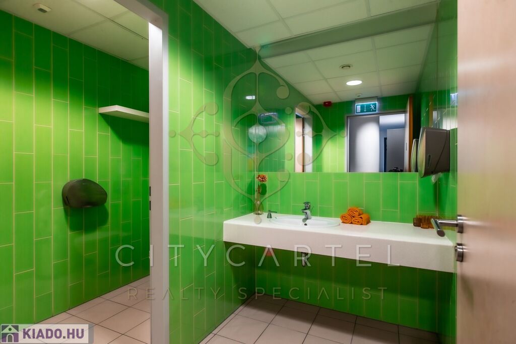 Ennek az irodarészlegnek a földszinten saját nagy konyhája és étkezője is van, aminek használatára minden bérlő jogosult.