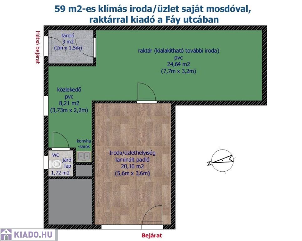 59 M2-ES, KLÍMÁS IRODA SAJÁT RAKTÁRRAL ÉS MOSDÓVAL KIADÓ A FÁY UTCÁBAN