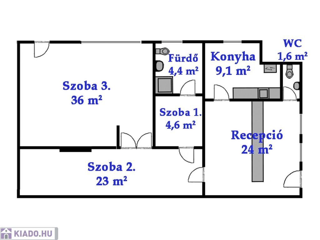 Alapterület: 103 m2, alaprajz szerinti elrendezésben, a képeken látható állapotban.