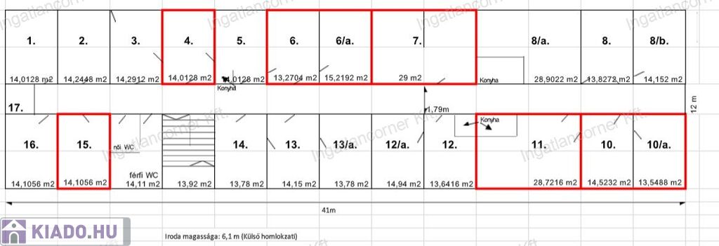 6. és 6/a iroda: 28,49 m² dupla iroda.