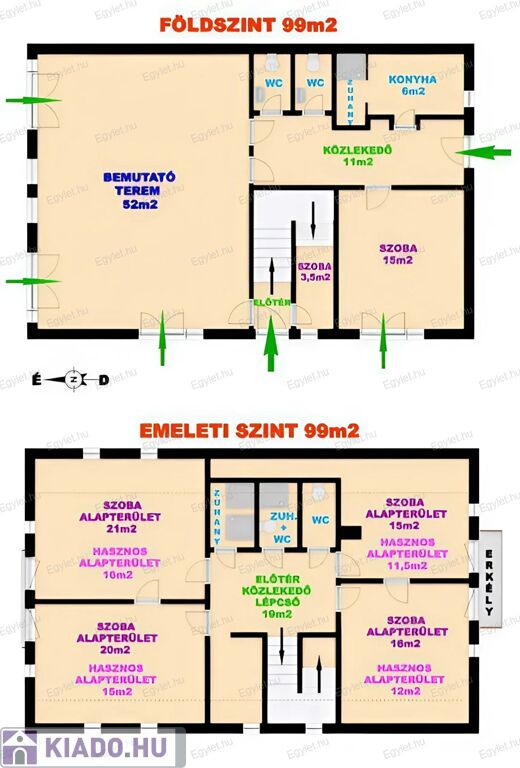 4 db SZOBA (21m2, 20m2, 16m2, 15m2)