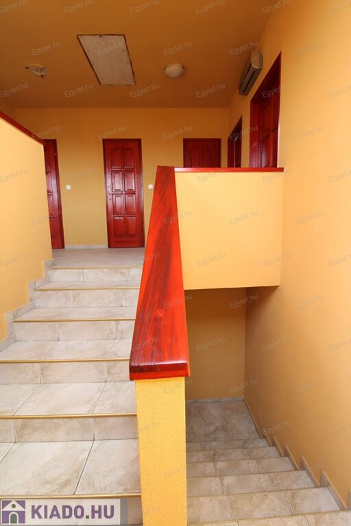 Zárt lépcsőház vezet fel az emeletre, ahol az előtérből nyílik az összes helyiség.