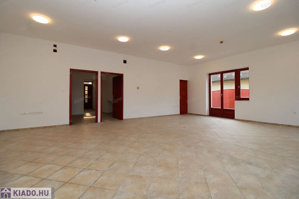 A bemutató teremből két ajtó is nyílik a közlekedő és a hátsó bejárat irányába, így az - igény szerint - akár ketté is osztható.