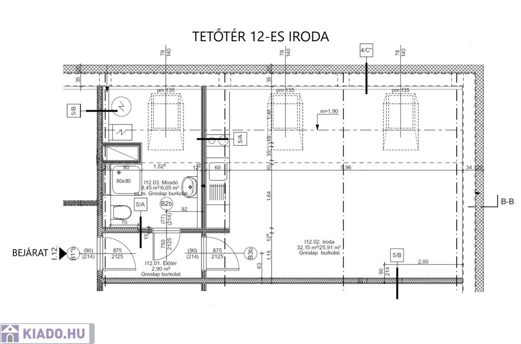 - br. 32,15, nettó 25,91 m2 iroda-teakonyhával kialakítású.