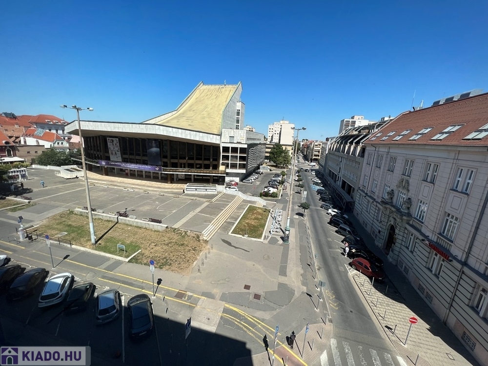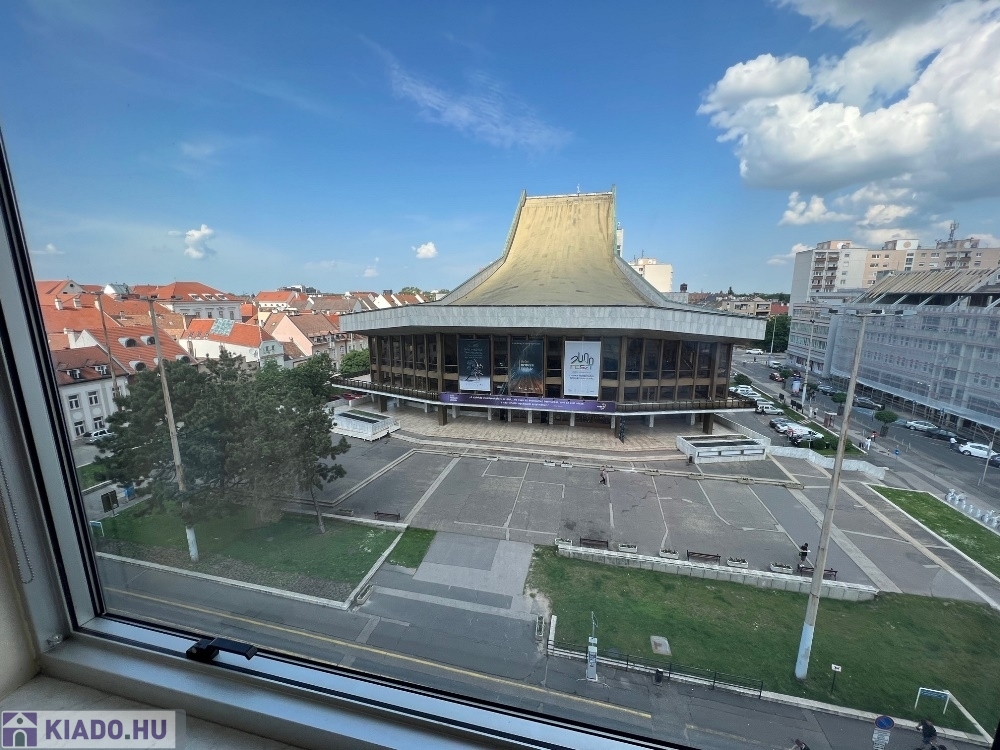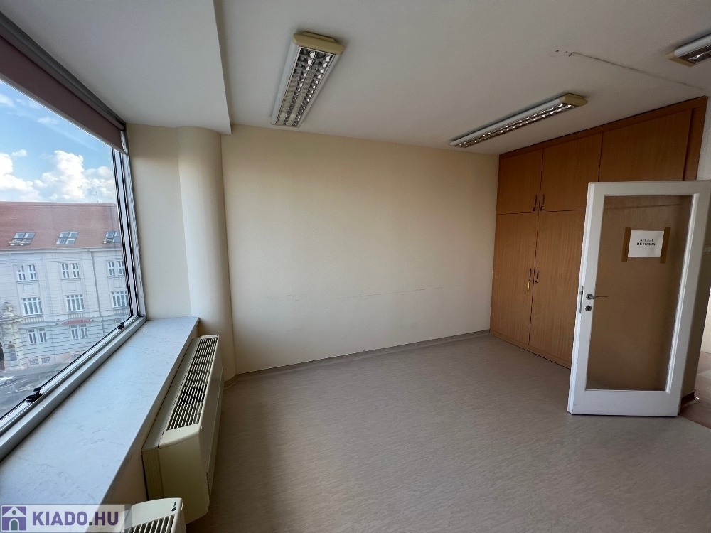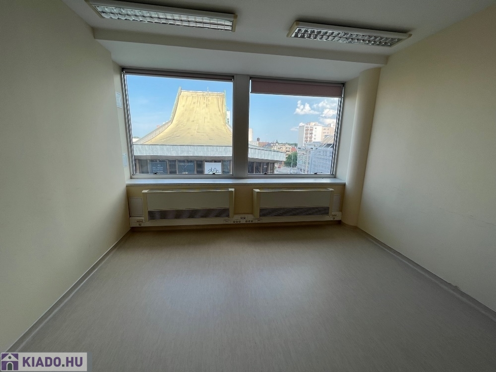 Győr-Belvárosának szívében, Baross úttól, Széchenyi tértől pár másodperces sétatávolságra, rendezett, tiszta irodaház 4. emeletén, nagy üvegfelülettel rendelkező, 18 m2-es bútorozatlan iroda, NEMZETI SZÍNHÁZRA való kilátással, közös tárgyaló használatának lehetőségével kiadó.