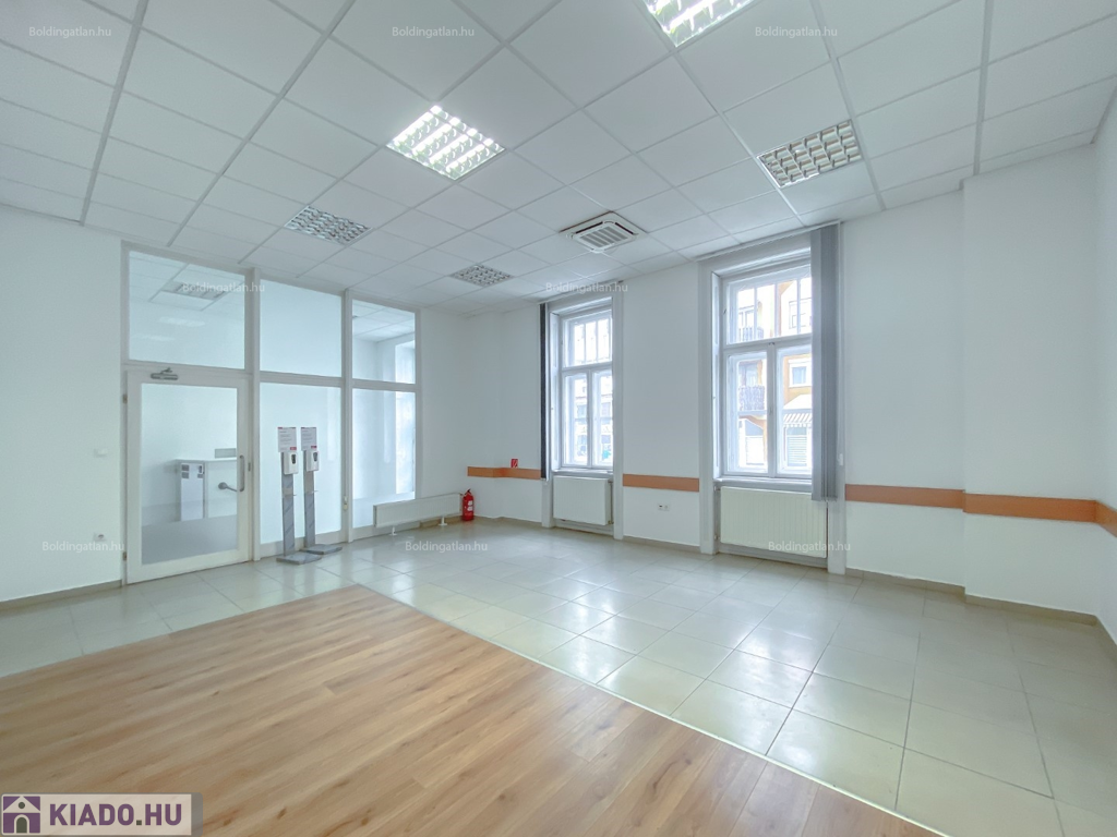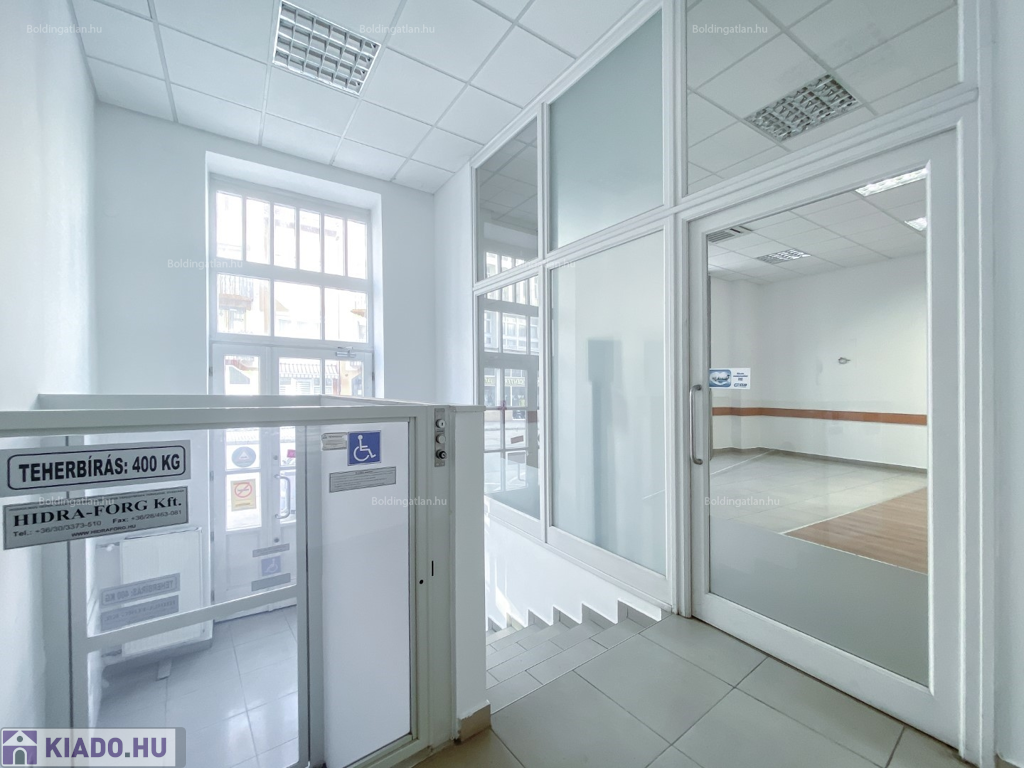 Kaposváron a belvárosban, a Fő utcában, kifejezetten frekventált helyen lévő 124,88 m2-es, akár azonnal is birtokba vehető 2 szintes irodaház, földszinten lévő, utcafronttal is rendelkező helyiségei hosszú távra kiadó. Az ingatlan földszintjén klimatizált ügyféltér, előtér mozgássérültek részére kialakított lifttel, 3 iroda, szerverszoba, wc-kézmosó, közlekedő, továbbá teakonyha, wc-kézmosó és udvari bejárattal rendelkező lépcsőházzal találhatóak, továbbá a lépcsőházból nyílik még a ház alatti - akár iratok tárolására alkalmas - pince is. Az épület fűtése Viessmann gázkazánnal megoldott, az irodák légkondicionálóval felszereltek, a zárt udvarban akár 15 személyautó parkolására is van lehetőség. Bérleti díj: 350.000.- Ft/hó + ÁFA + rezsi + 2 havi kaució