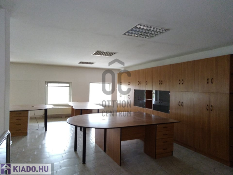 Az iroda jó tágas, világos, részben bútorozott.