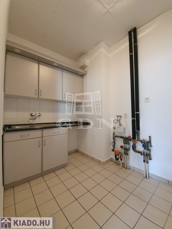 A klimatizált iroda risztóval felszerelt, fűtéséről és a melegvízről önállóan mérhető gázkazán gondoskodik. Az épületben lift nincs. Parkolás az épület előtt az utcán lehetséges.