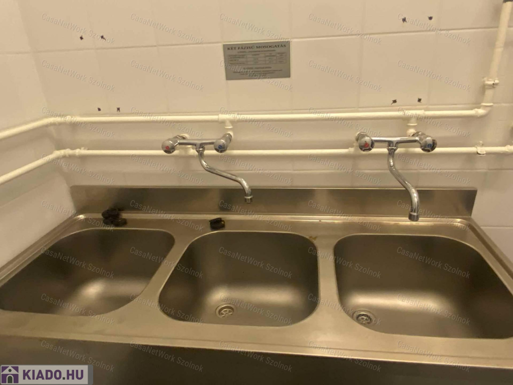 - a következő helyiségek találhatók az épületben: vendégtér, mosdók, pincérforgó, fehér mosogató, fekete mosogató, konyha, közlekedő, 3 szakosított raktár, 2 előkészítő, dolgozói szociális helyiségek, iroda. Minden helyiség járólappal burkolt, megfelel a HACCP előírásainak és minden vendéglátásban alkalmazott szabálynak