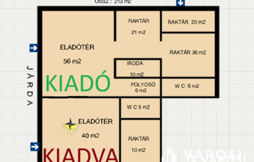 Szentes belvárosában kínálom kiadásra ezt a 160 m2-es üzlethelyiséget, ami kiváló állapotú, felújított. Az alaprajzon 213 m2 szerepel, ebből már ki lett adva 60 m2, ami gipszkartonnal elválasztásra kerül. A szolgáltatók mérőórái külön mérik a fogyasztást az adott üzletre. A nagyobb üzletnek 2 bajárata van. A biztonságról riasztó és kamera gondoskodik. A burkolat hidegburkolatú.