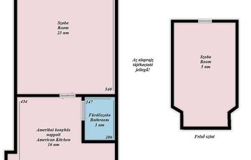 - 2 szobás (alsó szint: nappali, konyha, fürdő, WC – felső szint: hálószoba)