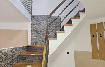 Kaposváron, a Bláthy Ottó utcában kínáljuk bérbevételre ezt a lakást. Egy kétlakásos családi ház egyik felében helyezkedik el, belső kétszintes. Földszinti részén az előtérhez csatlakozik egyrészt a konyha, másrészt a nappali, ahol az étkező is kialakítható, valamint találunk még itt egy kisebb fürdőt WC-vel, zuhanyzóval. A beépített tetőtérben a közlekedőből nyílik három külön bejáratú szoba és egy sarokkádas fürdő. A lakás alapterülete bruttó 90, nettó 77 m2. Tartozik hozzá egy garázs, valamint a kazánház, mint tároló. Fűtése saját gázkazánról működik, a szobákban radiátorokkal, a többi helyiségben padlófűtéssel. Külön mérőórák vannak, így a fogyasztás pontosan mérhető, a rezsi ezek alapján fizetendő. A lakás bútorok nélkül, üresen kerül kiadásra. Mivel van már egy kutya, ezért más állat nem hozható, és a dohányzás nem megengedett. Az udvar egy részét lehet használni. Bérlőt hosszabb távra, legalább egy évre keresünk, aki kéthavi bérleti díjnak megfelelő összegű kaució és az első havi bérleti díj kifizetése után beköltözhet.