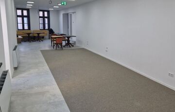 Az ingatlan az épület első emeletén található, amely két nagyobb területű részből áll. Ezen felül kialaításra kerüllt egy vezetői iroda, teakonyha, valamint külön női és férfi mosdók.