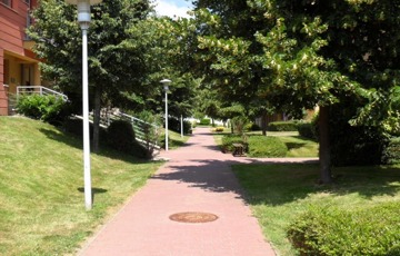 A parkosított udvaron a gyerekek biztonságosan játszhatnak, illetve kiváló lehetőség nyílik pihenésre, sétára.