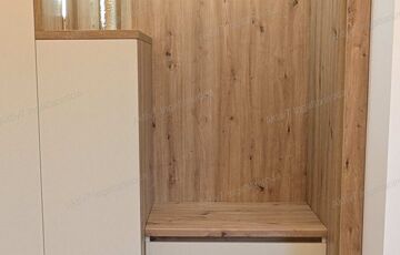 Okos tárolás: hatalmas beépített szekrény/fogas gardróbszekrény résszel, beépített ülőkével és hangulatos LED világítással.