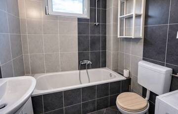 - a kádas fürdőszobában újszerű mosógép is rendelkezésre áll