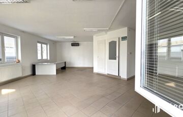 -Bemutatóterem + raktár kombinációra (pl. építőanyag, burkolat, nyílászáró, gép/alkatrész): az üzlet és a tárgyaló nagy üvegfelületes, világos, reprezentatív.